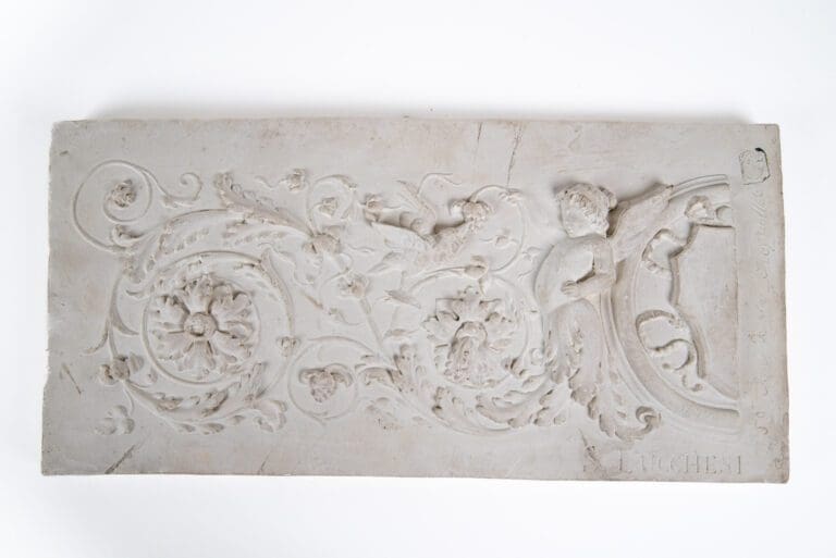 Dans la collection des Mérignargues, la flore s’illustre principalement sous forme de reliefs, une forme de sculpture qui peut donner l’impression que les fleurs se fondent dans le décor, bien qu’elles puissent tout à fait en être le centre. Ces motifs floraux permettent de compléter la sculpture et créent une véritable harmonie au sein de l’œuvre. La faune est également mise à l’honneur dans la collection, par exemple par des statuettes en ronde-bosse représentant des félins.