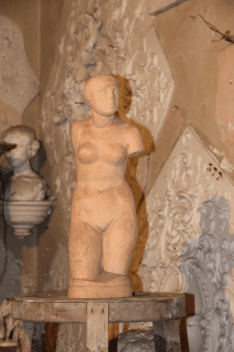 La carrière de Léopold et plus encore celle de Marcel restituent l’évolution du rapport à l’antique : des figures isolées dont l’attitude, le goût pour le nu idéal sont revisités par le naturalisme apporté par le modèle vivant. Les courbes des corps féminins sont pleines et harmonieuses, la pose franche, à l’image des créations de leur contemporain Aristide Maillol (1861-1944). L’inventaire de la maison-atelier comprend ainsi des exemples de cette recherche de formes plastiques lisses et dépouillées, adoptées par Marcel, à travers des statuettes de femmes se coiffant, ou alanguies sur un rocher, modelées en terre ou en plâtre.