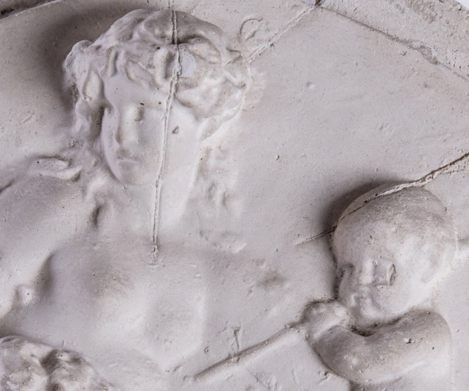 La technique employée est dite « à l’imprimé » : deux couches de plâtre sont déposées, la seconde étant renforcée par de la filasse. Les marques de coutures de cette phase n’ont pas été supprimées et sont encore visibles sur le médaillon. La technique à l’imprimé permet de réaliser des œuvres en série. La maison-atelier comprenait plusieurs moules du relief conçu par Léopold, témoignant de son succès commercial en matière de décoration intérieure dans la région nîmoise au xixe siècle.
