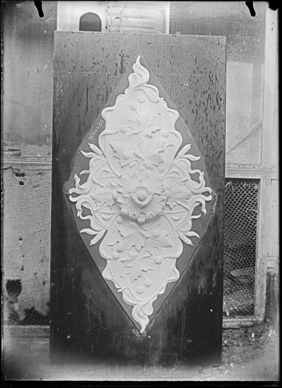 Le staff fait son apparition au milieu du XIXe siècle sous forme de corniches préfabriquées. Composé de plâtre, de toile de jute et de colle, le staff est un matériau résistant. Il est utilisé dans les techniques du moulage et de l’estampage, en particulier pour la réalisation de motifs. Peu coûteux, léger et rapide d’utilisation, il ne nécessite pas une préparation spéciale des supports sur lesquels il est appliqué.