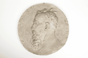 Le médaillon de Léopold Mérignargues par son fils Marcel, reprend ces codes antiques avec par exemple son nom gravé sur la droite et son titre sur la gauche. Ce médaillon reflète ainsi à la fois l’admiration que Marcel pouvait porter envers son père, mais pouvait aussi témoigner des liens qui les unissaient. Sa volonté d’être fidèle à la réalité, se lit à travers la finesse de ses traits et la façon dont son modèle est représenté, puisque Léopold posait souvent de profil lorsqu’il se faisait photographier. Ainsi, une grande attention aux détails sous toutes leurs formes est présente, caractéristique du genre du portrait.